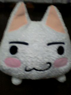 こちら、本日の戦利品で御座います。土日、そして今日と、頑張った結果、無事これが五体目です。その前にはペンギンとか、ウサギとか、クマとかゲットしたんですけど、色々。ぬいぐるみが欲しくて、けど、ただお金を出すのが嫌で、ユーフォーキャッチャーで頑張りました。そしたら、中々取れずにうろうろしてる私を見かねたお店のお兄さんが、落ちる穴の縁に、この子の頭を載せてくれて、がっつりゲットです。もふもふで気持ちええです。